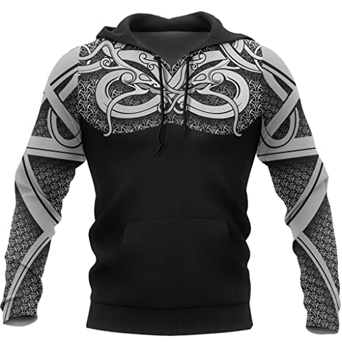 JJLLAZAD Viking tatuering luvtröja herr 3D-utskrift Harajuku Casual Lös tröja Oversized sweatshirt Höst Casual Street Jacka,Black hoodie,3XL