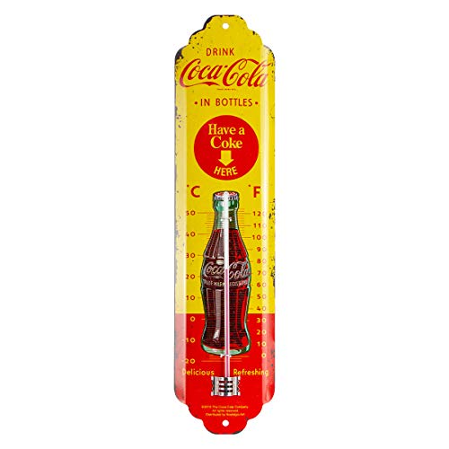 Nostalgic-Art Analog termometer i retrostil, Coca-Cola – In Bottles Yellow – Presentidé för Coke-älskare, av metall, Deko vintagedesign, 6,5 x 28 cm