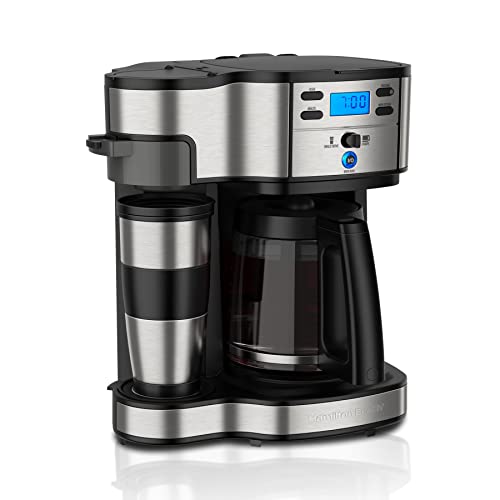 Hamilton Beach - Kaffemaskin Med Dubbla Bryggsystem, Termoskopp Ingår, Upp Till 12 Koppar Kaffe, Rostfritt Stål Filter Kaffemaskin, Programmerbar Timer, Rostfritt Stål / Svart (49980A-CE)