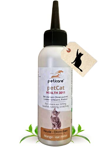 Peticare Örondroppar för öronkvalster för katter – effektiv vårdmedel för kvalster, öronkanter, klåda på örat, vårdar och rengör – petCat Health 3011