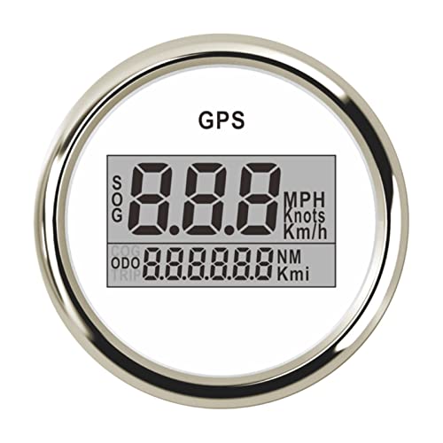 JUSTZHIQIANG 85mm marin båtbil Gps Hastighetsmätare Lcd Visa 0~999 knop Map Km/h Justerbar digital hastighetsmätare med bakgrundsbelysning (Color : White Silver Gauge)